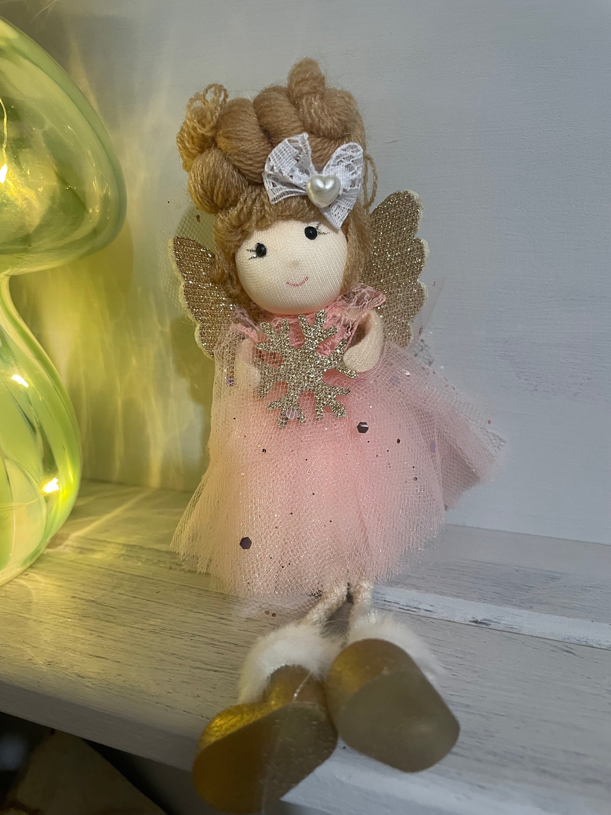 White sparkle angel -festive fairy shelf sitter decoration - pink