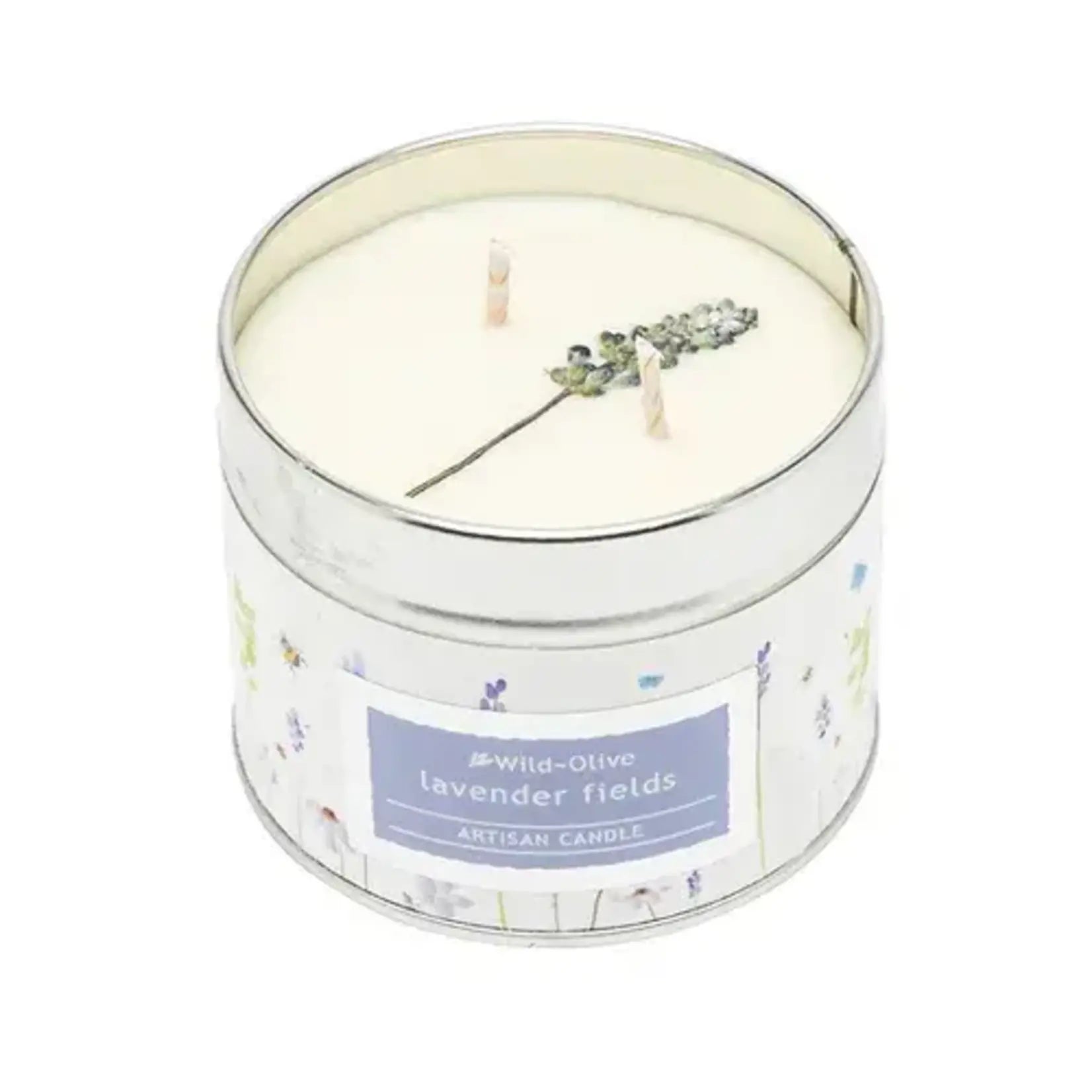 Natural soy candle hand poured and decorated with pressed flowers. Lavender, sweet vanilla and patchouli for a calm and tranquil vibe.