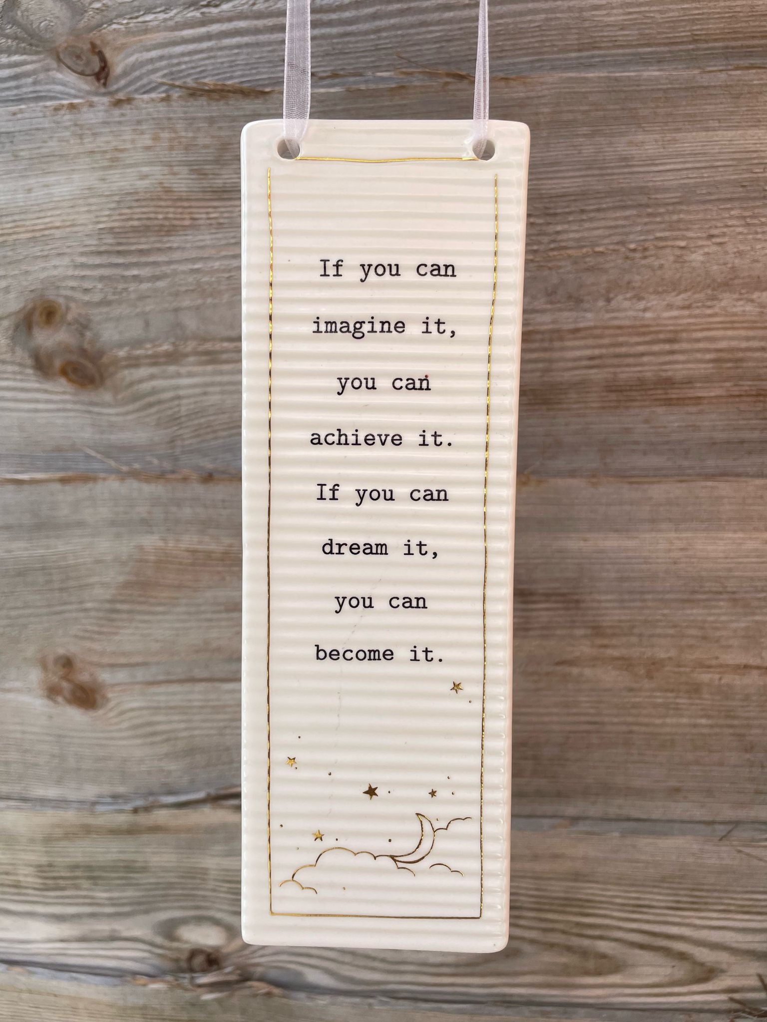 Thoughtful Words Ceramic Plaque- Saying The Words "If You can imagine it, you can achieve it, if you can dream it you can become it " With Ribbon Hanger 6Cmx18Cm