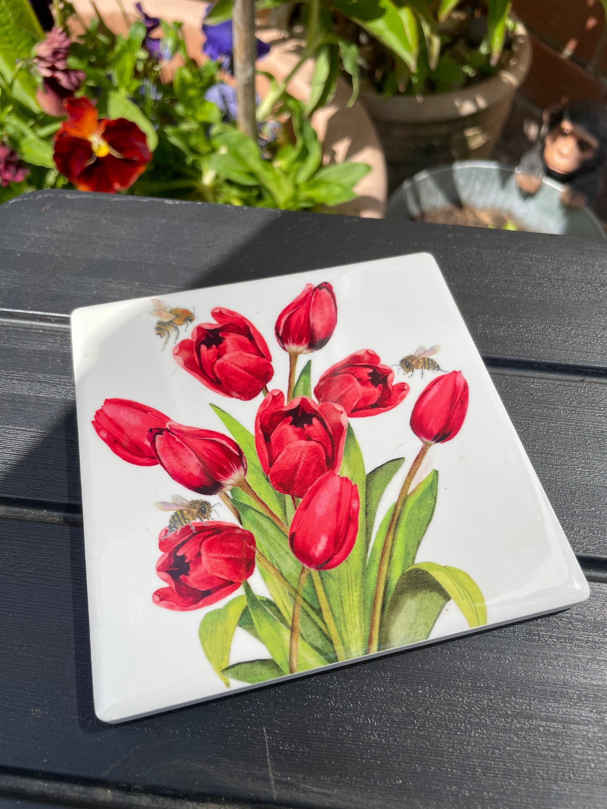 Tulip and bee ceramic coaster