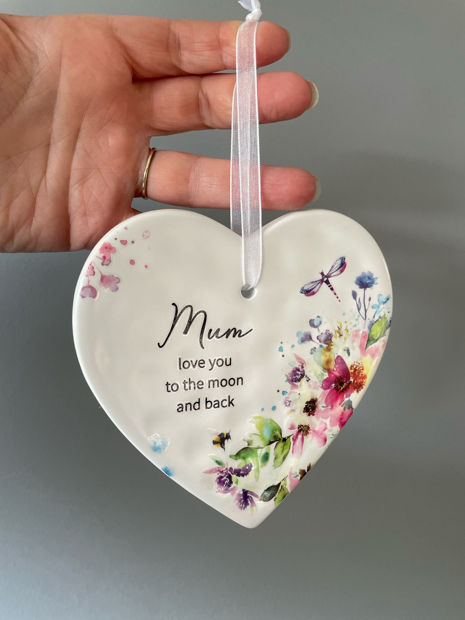 Ceramic Heart Plaque With Wild Blossom Design - 12x12cm