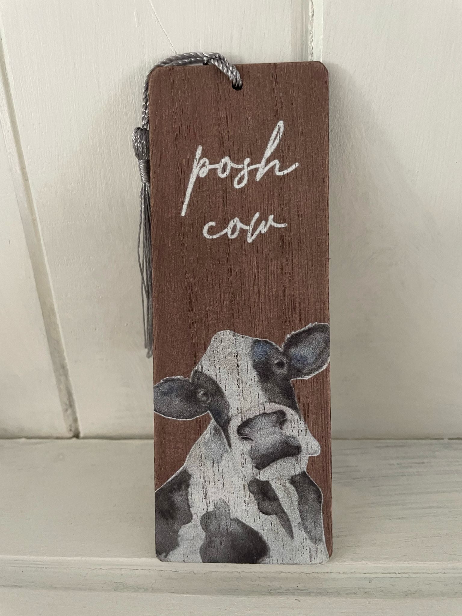Wood Bookmark With Fun Cow Design Saying “Posh Cow”